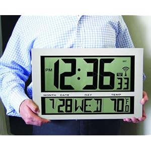 Jumbo Giant Digital Atomic Wall Clock Thermometer. 4.5" Tall Numbers Readable from 30 Feet!